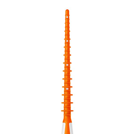 Die orangefarbene XS/S-Variante ist speziell für enge Zahnzwischenräume entwickelt. Dank des ergonomischen, rutschfesten Griffs liegt der Reiniger sicher in der Hand auch unterwegs oder mit leicht feuchten Fingern.